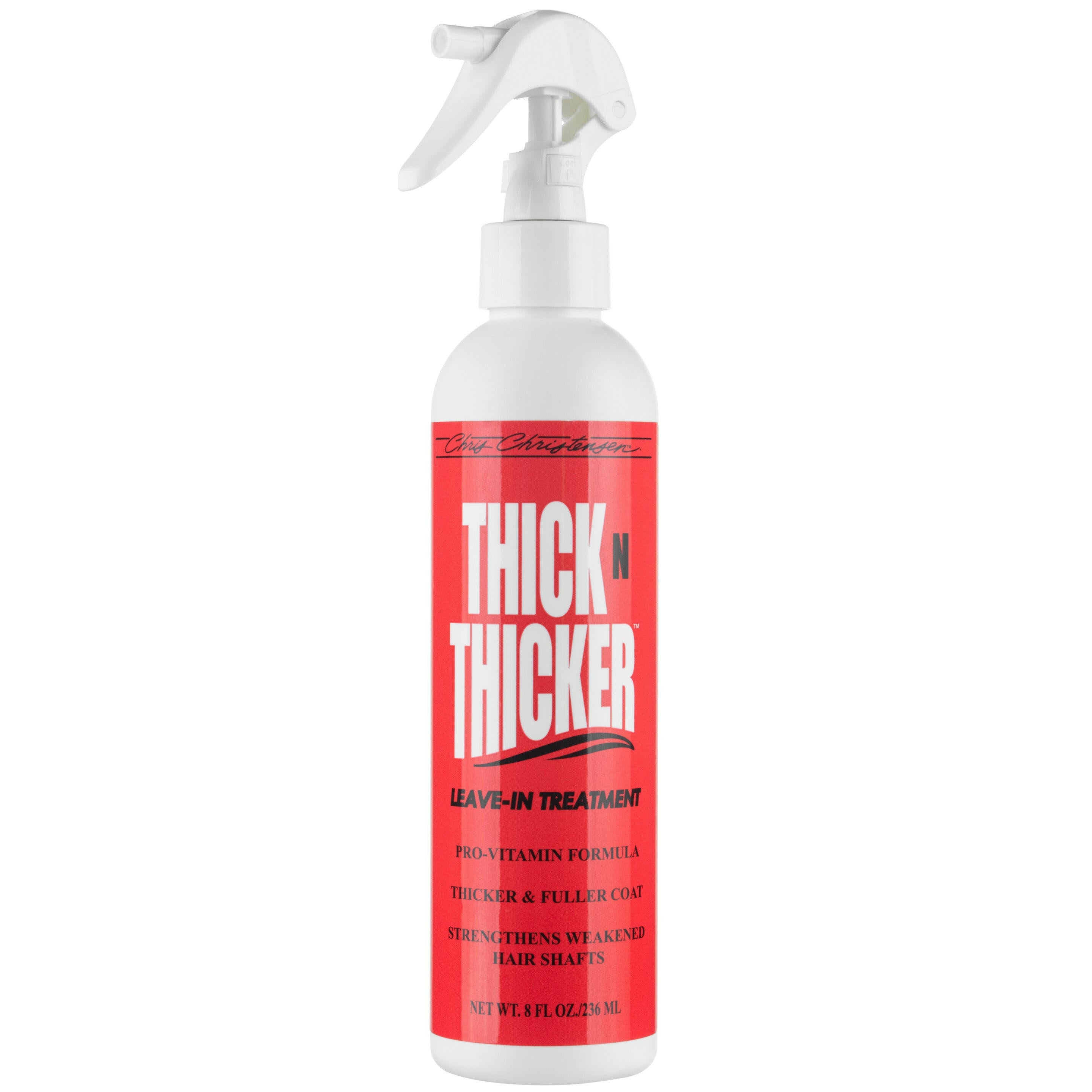 Chris Christensen -merkin Thick N Thicker -paksunnuskosmetiikkasarjan uusin versio sisältää parannetun koostumuksen! Tämä tuote sisältää täydellisesti koostetun sekoituksen ravitsevia ainesosia, rikastettuna provitamiinikaavalla, joka ravitsee ja vahvistaa eläimen turkkia. Se lisää hiuksiin volyymia ja joustavuutta, jättäen ne runsaan, terveen ja kauniin näköisiksi. Käytön jälkeen turkki on huomattavasti paksumpi ja kiinteämpi. Lisäksi Thick N Thicker Spray lisää tiheyttä ja vahvuutta veltolle karvalle, joka tarvitsee välitöntä elvytystä. Tuote ei sisällä haitallisia tai kemiallisia aineita. Turvallinen kaikille turkkityypeille ja -väreille.