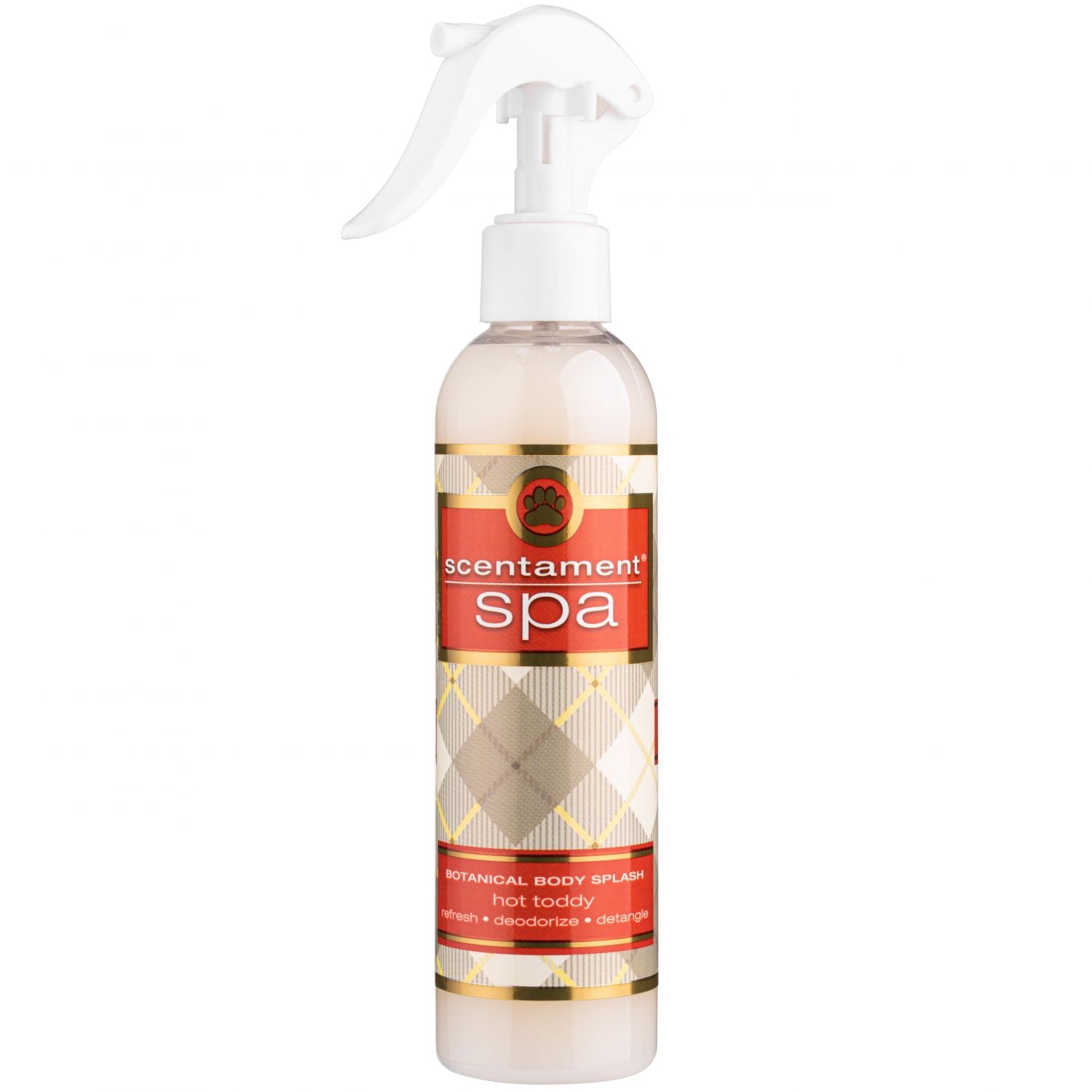 Best Shot Scentament Spa Hot Toddy Spray ir lielisks kažoka kondicionieris - obligāts katram mājdzīvnieka īpašniekam. Ideāli piemērots kažoka atsvaidzināšanai starp vannām, tas ir būtisks ikdienas ķemmēšanas laikā. Tas atvieglo savēlušos spalvu atšķetināšanu un tam ir antistatiska iedarbība, novēršot kažoka elektrizēšanos kopšanas laikā. Zīda proteīnu, vitamīnu un kumelīšu, žeņšeņa, rozmarīna, rožu un salvijas ekstraktu klātbūtne uzlabo mājdzīvnieku ādas un spalvas stāvokli. Pēc lietošanas kažoks smaržo brīnišķīgi, ir savaldīts un viegli kopjams. Tas nesatur alkoholu un ir piemērots visu vecumu suņiem un kaķiem. Tam ir aromātiska ruma, kļavu sīrupa, karamelizēta cukura smarža, kas savijas ar kanēli, muskatriekstu un vaniļas pupiņu.