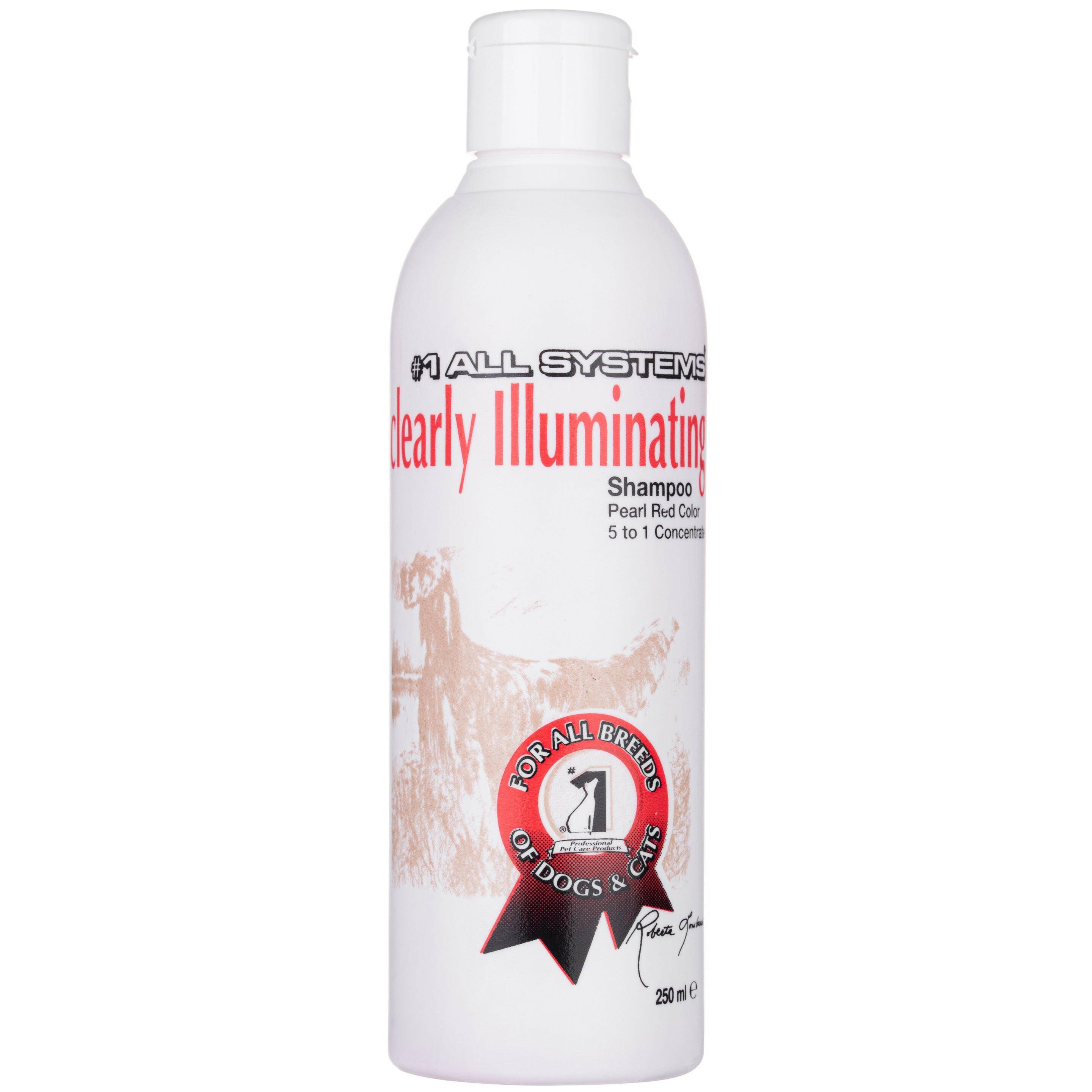 Lietošanas instrukcijas: Šampūns ir koncentrēts un jāatšķaida ar ūdeni vismaz attiecībā 1:5. Iemasējiet rūpīgi samitrinātos matos. Izskalojiet ar siltu ūdeni. Ja nepieciešams, izmantojiet otro mazgāšanu ar šampūnu, kas piemērots kažoka tipam. Pēc #1 All Systems Clearly Illuminating Shampoo lietošanas varat turpināt kopšanu ar kondicionieri vai citu veidošanas līdzekli, kas piemērots kažoka tipam. Šis šampūns nekādā veidā nemaina kažoka struktūru, tāpēc to var izmantot gan raupja kažoka terjeriem, gan cietā kažoka aitu suņiem, kā arī mīkstajam un maigajam Maltas, Jorkšīras vai Amerikas kokerspaniela kažokam. To var droši izmantot tik bieži, cik nepieciešams, neuztraucoties par jebkādām blakusparādībām (sausa āda, blaugznas utt.). Visi #1 ALL SYSTEMS produkti ir 100% bioloģiski noārdāmi.