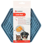 Ar Flamingo Lick Pad Bean visas kopšanas aktivitātes kļūs par prieku. No šī brīža nagu griešana vai izķemmēšana būs vieglāk, jo jūsu sunim būs daudz labāka uzmanības novēršana šajā laikā. Pats laizīšanas process dzīvniekam ir relaksējošs un nomierinošs, tāpēc jebkurš stress, ko izraisa ceļojums, veterinārārsta apmeklējums vai kopšanas sesija, ātri izzudīs pēc Lick Pad lietošanas. Paklājiņš ir pieejams divās krāsās: pelēkā un zilā. Tam ir rieva malā, kas darbojas kā grāvis, novēršot kukaiņu iekļūšanu ēdienā. Jūs varat to viegli paņemt līdzi piknikā vai izbraucienā ārpus pilsētas.