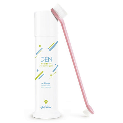 Zobu kopšanas komplekts suņiem un kaķiem, kas paredzēts mutes higiēnas uzturēšanai un profilaksei. Fluorīda zobu pasta satur maigus balināšanas un dezinfekcijas līdzekļus, kas atbalsta pareizu mutes tīrīšanu, noņem zobakmeni un palēnina aplikuma veidošanos. Produkts tīra un atsvaidzina elpu, un tā garša patiks jūsu mājdzīvniekam. Komplektā ietilpst arī divpusēja zobu birste ar mīkstiem sariem. Tai ir garš rokturis lietotāja ērtībai un drošībai, tīrot mājdzīvnieka zobus. Zobu birstes galviņas ir divos izmēros: mazākas un lielākas, ļaujot piekļūt visām, pat grūti aizsniedzamām vietām. Mazākā ir ieteicama kaķiem vai mazākiem suņiem. Zobu pastas tilpums ir 100 ml, savukārt rozā zobu birste ir 22 cm gara.