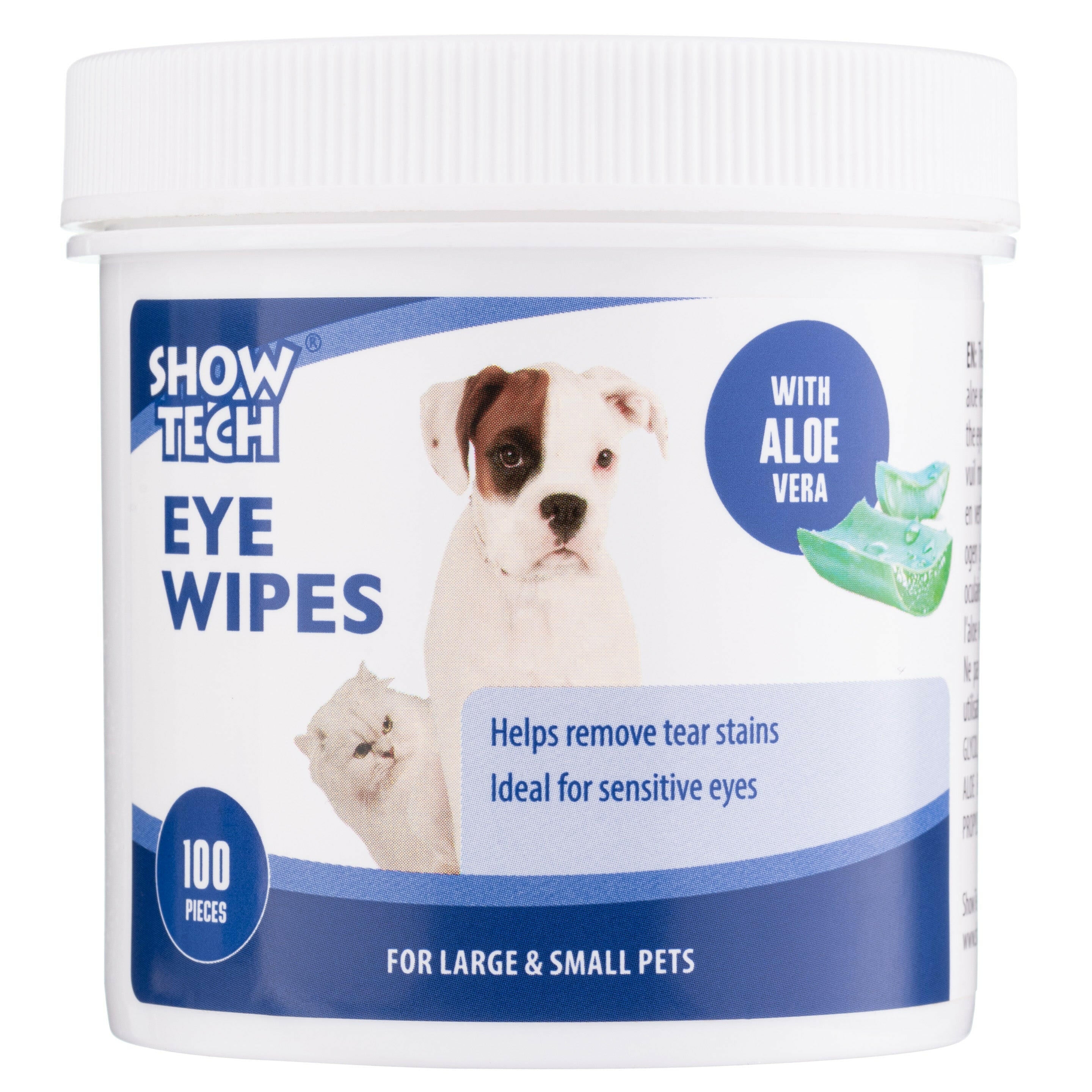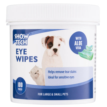 Show Tech acu salvetes ir acu higiēnas salvetes suņiem un kaķiem. Tās ir piesūcinātas ar maigu tīrīšanas šķīdumu. Iepakotas ērtā traukā, kas novērš saturu no izžūšanas. Paredzētas gan mājdzīvnieku, gan to īpašnieku komfortam. Tās noņem netīrumus un baktērijas ap acīm. Atstāj smalku aizsargslāni, kas novērš baktēriju nosēšanos. Tās aizsargā, tīra un dezinficē, padarot tās ideāli piemērotas jutīgiem suņiem. Formula satur alvejas ekstraktu, kam piemīt mitrinošas un pretiekaisuma īpašības, nomierina iekaisumu un paātrina brūču dzīšanu. Produkts ir viegli lietojams; vienkārši izvelciet salveti, izmantojiet to un pēc tam izmetiet. Salvetes ir lieliski piemērotas ceļojumiem un atvaļinājumiem. Iepakojumā ir 100 salvetes. Sastāvdaļas: Ūdens, Propilēnglikols, Dimetiloldimetilhidantoīns, Glicerīns, Nātrija hlorīds, Aloe Barbadensis lapu ekstrakts, Diazolidinilurīnviela, Metilparabēns, Propilparabēns, Cetrimonija hlorīds, Jodopropinilbutilkarbamāts.