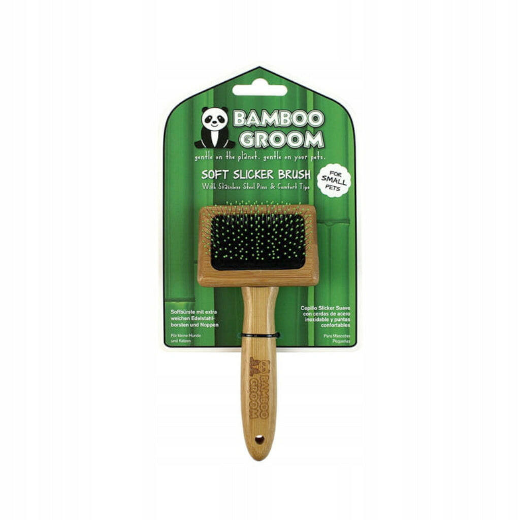 Bamboo Groom Soft Slicker Brush Small - bamboo slicker brush with safe pins, for small dogs and cats.