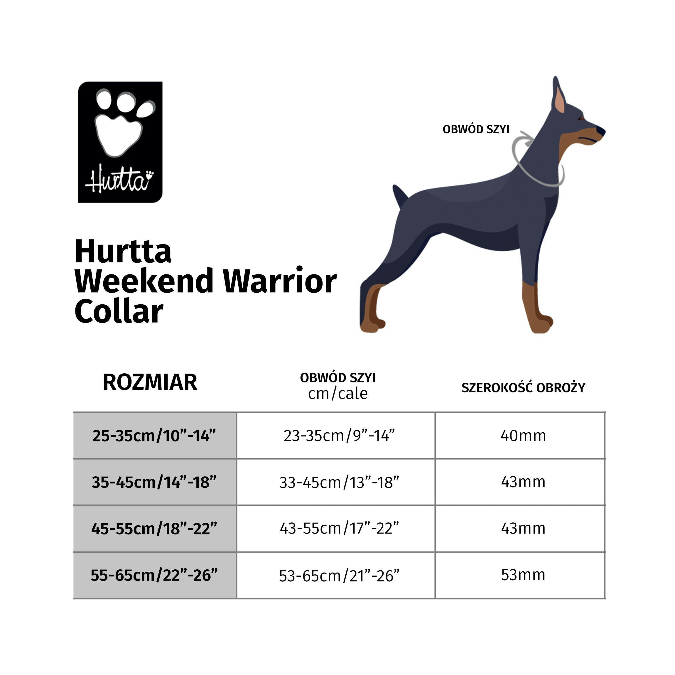 Ищете красивый и, прежде всего, удобный ошейник для вашей собаки? Такой, который подходит для повседневного ношения, независимо от погоды? Ошейник Hurtta Weekend Warrior идеально подходит для вас. Он изготовлен из прочной и устойчивой к истиранию нейлоновой ленты. Для обеспечения максимального комфорта для вашей собаки внутренняя сторона выстлана дышащей тканью air-mesh. Внешняя часть сделана из мягкого неопренa, дополнительно ламинированного слоем водонепроницаемого материала Houndtex®, предназначенного для защиты поводка от неблагоприятных внешних условий. Светоотражающие элементы, выполненные по технологии 3M, обеспечивают видимость. Современный дизайн и очень высокое качество изготовления удовлетворят требования и ожидания даже самых взыскательных пользователей. Поводок разработан с большим вниманием к деталям: современный дизайн и интересный узор, легкость в надевании и снятии, застегивается на прочную двухточечную пряжку, изготовлен из прочного и водонепроницаемого нейлона. Эргономичная форма обеспечивает комфорт при ношении, равномерно распределяя давление при использовании с поводком. Он оснащен мягкой, удобной и устойчивой к натиранию подкладкой из дышащей сетки. Внешний слой — неопрен, покрытый водонепроницаемым ламинатом Houndtex®. Металлические компоненты изготовлены из нержавеющей стали с местом для маркировки ошейника. Ошейник изготовлен из материалов, не содержащих токсичных веществ, что подтверждено международной сертификацией STANDARD 100 by OEKO-TEX®. Он соответствует стандартам прочности, установленным для ошейников: был протестирован на растяжение в соответствии со стандартом SFS-EN ISO 13934-1. Металлические фитинги были протестированы на коррозию в соответствии со стандартом EN ISO 9227:2017 (E). Совет: Создайте идеальный комплект, сочетая этот фантастический ошейник с поводком Hurtta Weekend Warrior! О бренде: Hurtta является лидером среди производителей высококачественных шлейек, поводков, ошейников и одежды для активных собак. Известная и уважаемая компания, основанная в 2002 году в Финляндии. Ее эргономичные и чрезвычайно полезные тренировочные и спортивные аксессуары любят люди по всему миру. Оригинальный стиль, современный дизайн и уникальный материал Houndtex®, используемый в их продуктах и запатентованный этим производителем, обеспечивают комфорт, удобство и стильный внешний вид для собак. Продукция этого бренда отличается отличным качеством, долговечностью и функциональностью. Физически активные владельцы собак ценят возможность использовать аксессуары Hurtta во время прогулок, спортивных мероприятий, таких как бег или дог-трекинг.